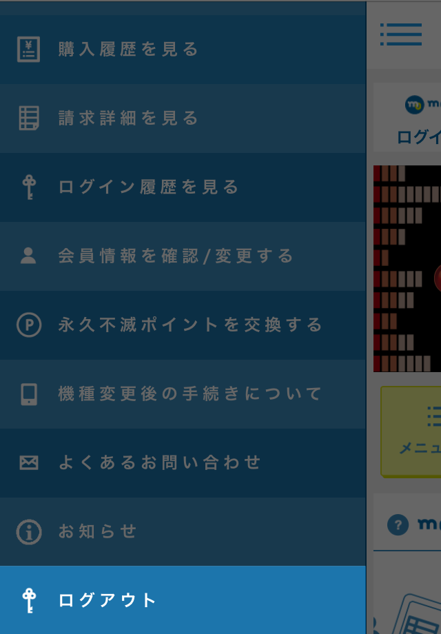 mopitaページでログアウト選択