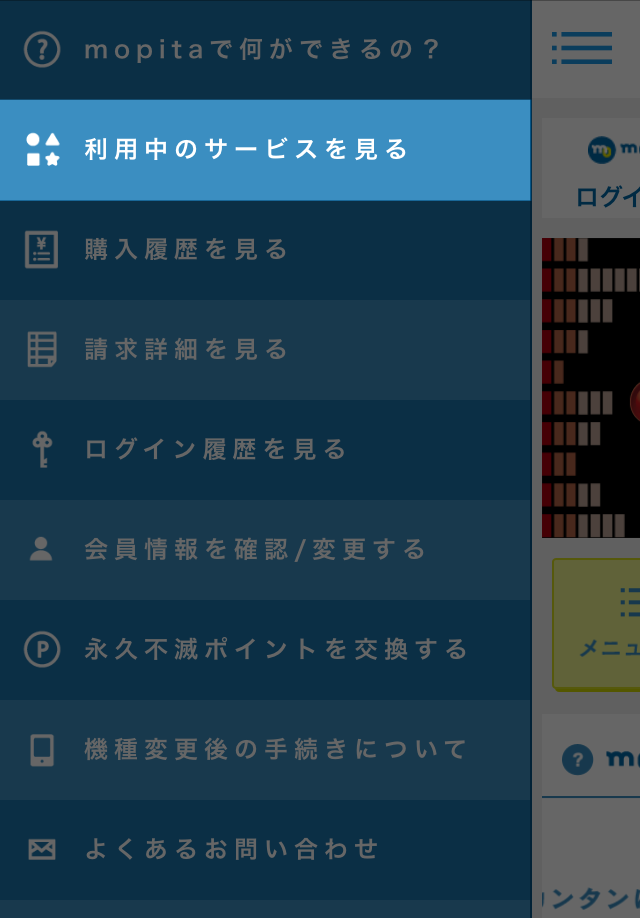 mopitaページでログイン選択