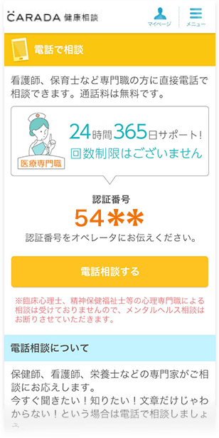 CARADA 健康相談では、多種多様な体の悩みにお答えできるよう、各専門家がスタンバイしております